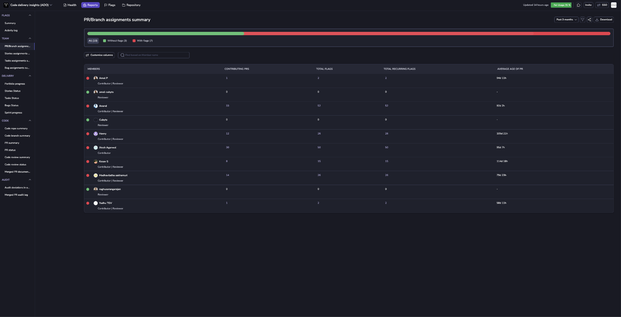 Governance Deep-Dive Reports provide topic-based, investigative views across the software delivery lifecycle. While health reports highlight what is at risk, deep-dive reports explain why—by enabling structured drill-downs into delivery execution, code changes, contributor actions, and audit outcomes.